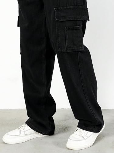 More information about OYOANGLE Men's Cargo Jeans Embroidered Flap Pocket Straight Leg Denim Cargo Pants
