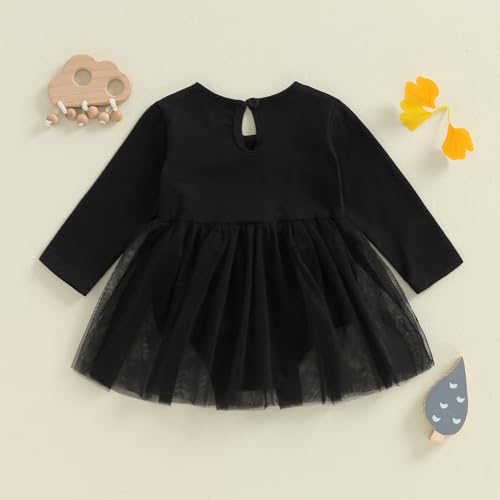 Muasaaluxi Newborn Baby Girl Halloween Outfit Long Sleeve Doll Collar Romper Tutu Dress Black Bodysuit Halloween Dress 0-24M 7