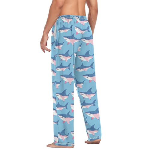 HOT ! Men's Pajama Pants Blue Shark Pink Pajama Pants for Men PJs Bottoms Drawstring Pockets Sleep Lounge Pants S