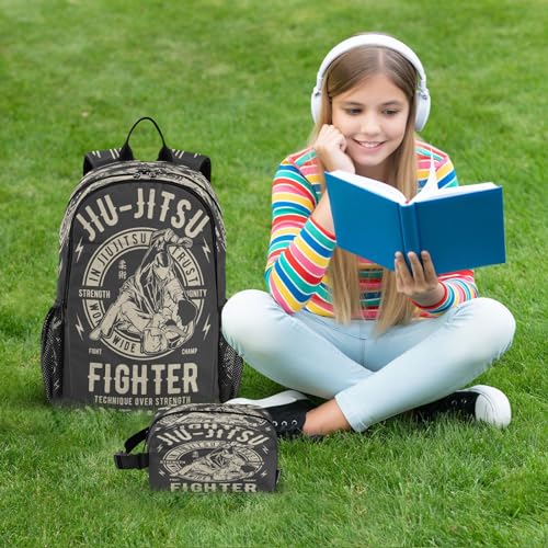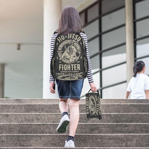 HOT ! Nisza Kids School Backpack with Lunch Box, Jiu-jitsu Pattern Elementary BookBag Set for Girls Boy