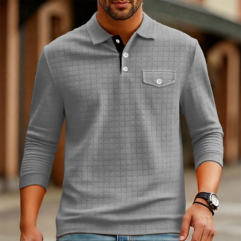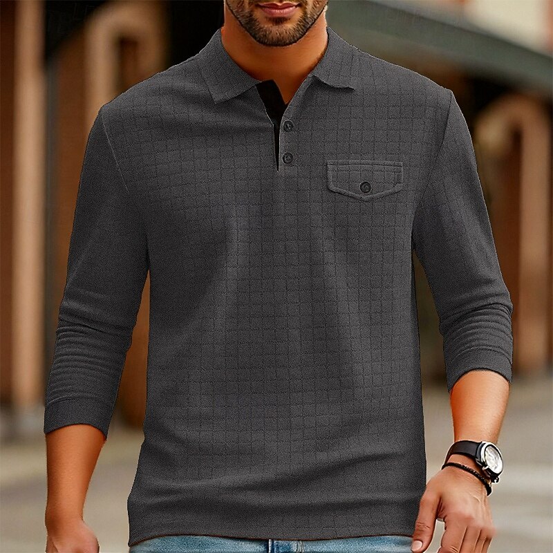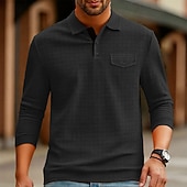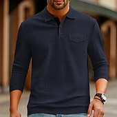 More information about Men's Golf Shirt Golf Polos Shirts Work Casual Lapel Long Sleeve Basic Modern Plain Jacquard Buttons Spring Fall Regular Fit Black White Navy Blue Orange Dark Gray Gray Golf Shirt