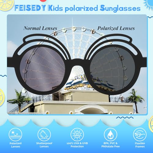 • UV 400 Protection Polarized Lenses - FEISEDY protection Lenses can eliminate the glare that irritates the glasses, protect baby's eyes from long-term damage by blocking 100% of harmful UVA and UVB rays.