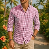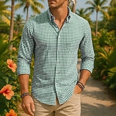 More information about Men's Shirt Summer Shirt Casual Shirt Beach Shirt Button Up Shirt Red Blue Green Long Sleeve Plaid Lapel Vacation Hawaiian Clothing Apparel 100% Cotton Fashion Casual Comfortable