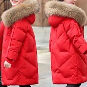More information about Kids Girls' Down Coat Solid Color Fashion Fur Trim Zipper Pocket School Cotton Coat Outerwear 4-12 Years Winter Black Pink Red