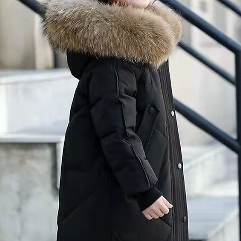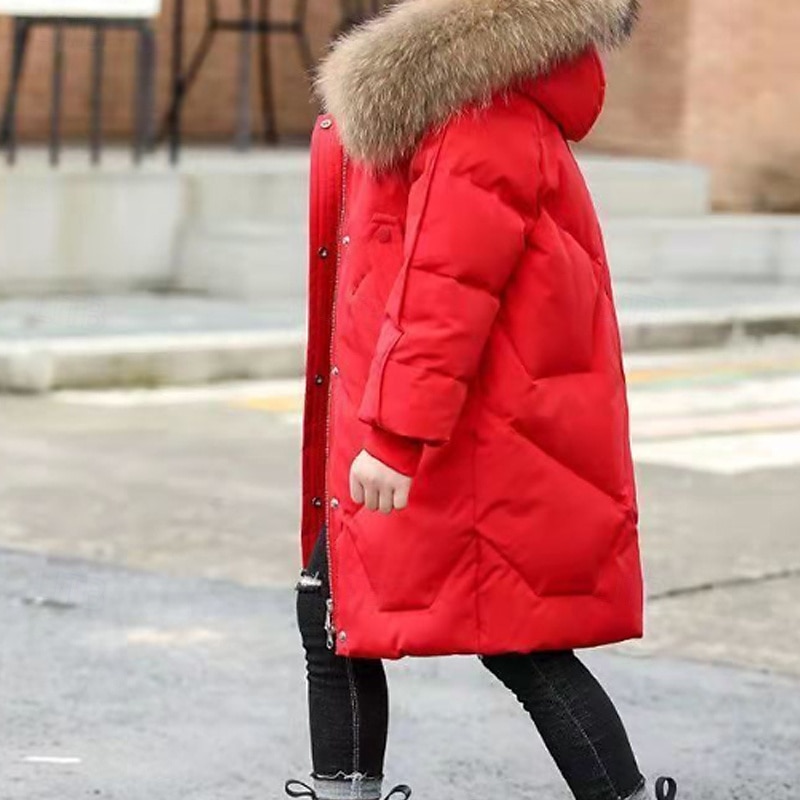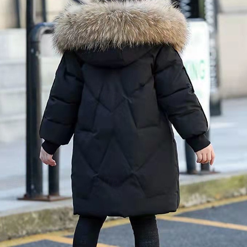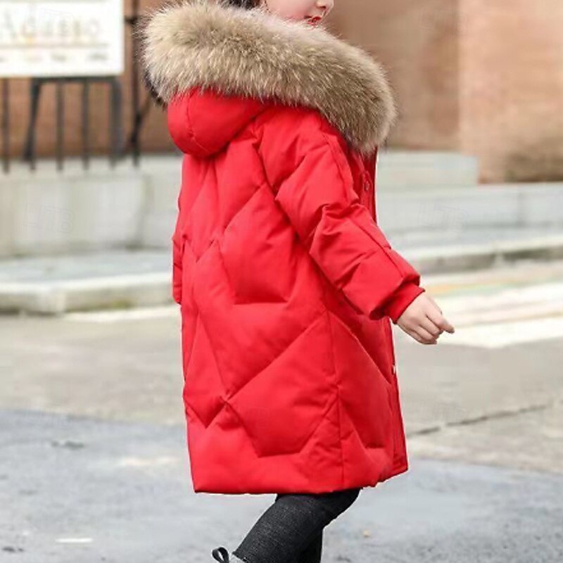 Kids Girls' Down Coat Solid Color Fashion Fur Trim Zipper Pocket School Cotton Coat Outerwear 4-12 Years Winter Black Pink Red 7