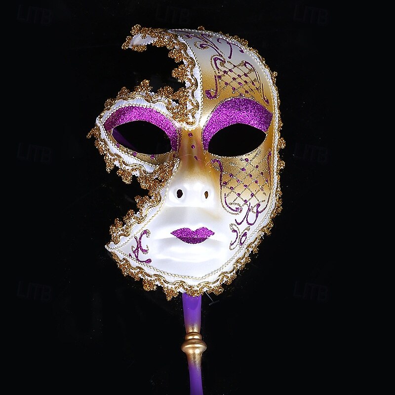 HOT ! Arlecchina Halloween Venetian Mask Mask On a Stick Volto Carnival Mask Half Face Adults' Men's Women's Halloween Carnival Mardi Gras Performance Party Carnival of Venice Easy Halloween Costumes Dress