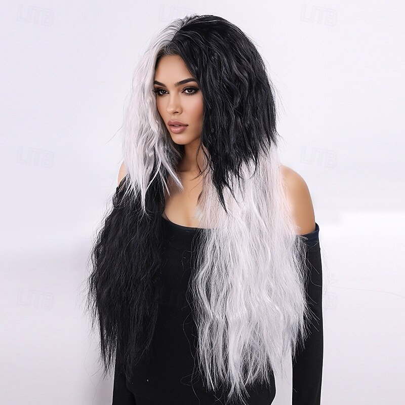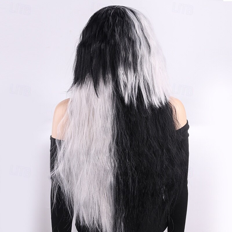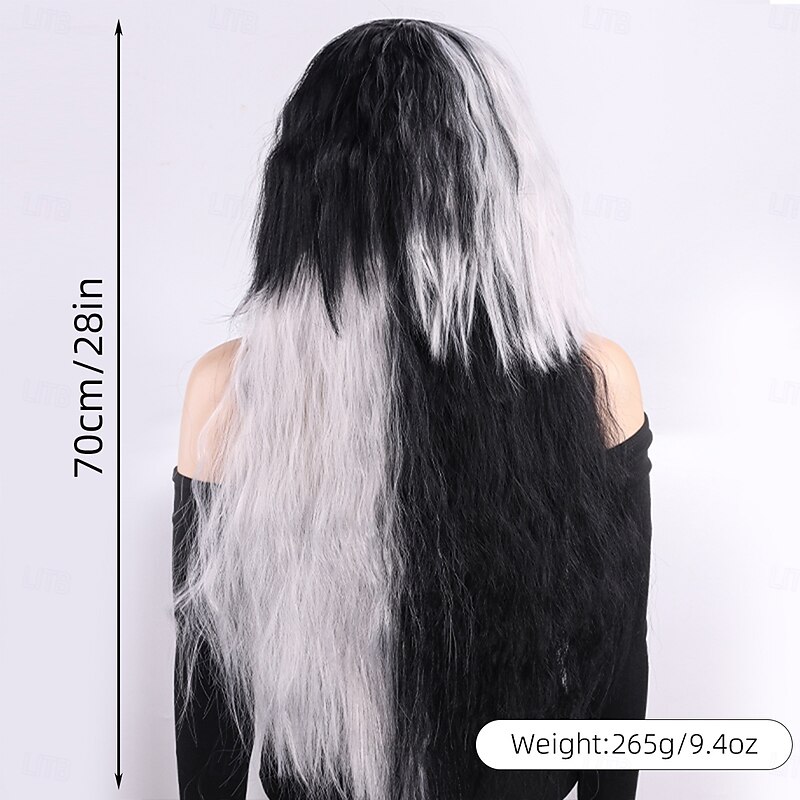 More information about Synthetic Wig Curly Weave Micro Locs Layered Haircut With Bangs Machine Made Wig Long 28 inch A1 Synthetic Hair Women's Classic Comfortable Color Gradient Black White