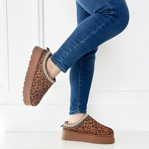 TRENDSUP Women's Platform Slippers, Suede Short Ankle Boots, Fur Fleece Lined, Slip-on, Durable for Indoor and Outdoor, Warm and Fuzzy 6