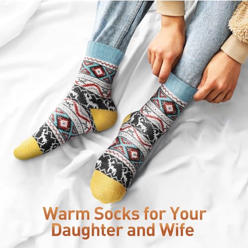 5 Pack Women Wool Socks, Winter comfortable Cabin, Thick Cozy velvety Crew Socks, Stocking Stuffers Gifts for Women Men