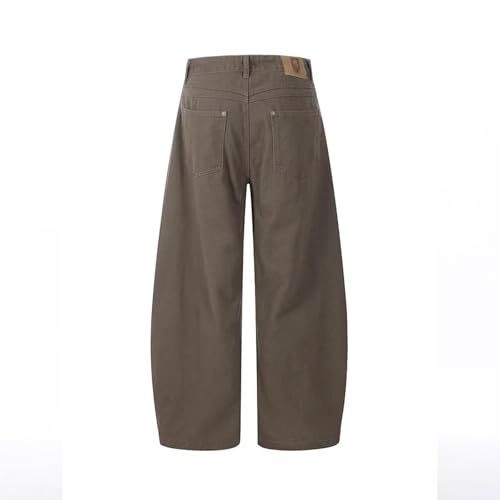 More information about Barrel Jeans Men Brown Baggy Wide Leg Skater Denim Pants High Waist Streetwear Barrel Leg Bottoms Relaxed Loose with Pockets