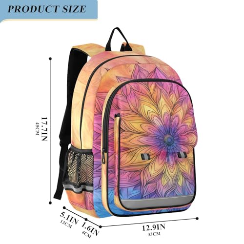 senya Pink-yellow Tie Mandala Backpack Water-Resistant Bag Lightweight Bookbags with Reflective Strip 5
