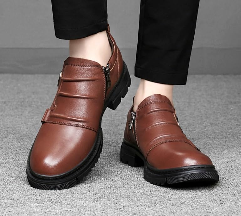 More information about Men's Classic Brogue Oxfords Shoes Mens Round Toe Non Slip Leather Dress Shoes Fashion Breathable Slip-On Tuxedo Shoes(Brown,6.5)