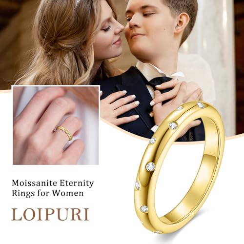 Moissanite Eternity Band Rings for Women, 14K Gold Plated D Color VVS1 Moissanite Stackable Engagement Ring, Non Tarnish Eternity Wedding Band, Birthday Jewelry Gifts for Her Size 5-10 4