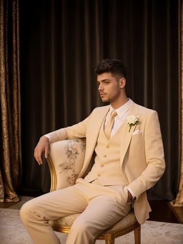 Fabric type: Polyester and Viscose;mens suits 3 pieceCare instructions: Dry Clean OnlyOrigin: ImportedMaterial: Mens suit is made of high-quality materials, which are moisture-absorbent, comfortable, breathable, reduce skin irritation, less likely to cause allergies, less prone to deformation and durable.It is easy to clean, comfortable to wear and experience, and can also modify the figure, making the body proportions more harmoniousSize: To ensure the correct size of suits for men , please read our size table and compare your height, weight and size before choosing the size.Care Instructions:After receiving the suit,please gently iron it before wearing it for the first time to smooth out the wrinkles.If conditions permit, it is recommended that mens suit/tuxedo for men/suits for men be dry-cleaned.If hand-washing,use cold water (below 40°C) and avoid excessive rubbing to preserve the fabric's texture and color.Low-temperature ironing and hanging the clothes on the hanger when not in useA Wonderful Gift:Fashionablesuits for men/mens suit are uniquely designed, comfortable to wear and slimming.This slim-fit men's suit can be matched with various types of shirts and is also a great gift.It is suitable for your father, friends, son and boyfriend.Occasion:Suits for men is a wardrobe essential that transitions seamlessly between events.It's suitable for multi-occasions, like business /casual/wedding party/formal/groomsmen prom/party dinner/graduation ceremony Perfect for everyday use. excellent materials and excellent craftsmanship ensure long-lasting durability.