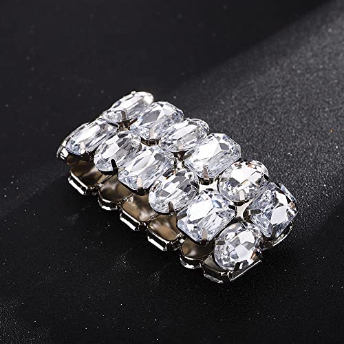 Denifery Crystal Bracelet Bridal Rhinestone Bangles Statement Wedding Bracelet for Women 3