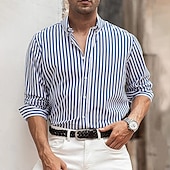 More information about Men's Geometric Striped Shirt Button Up Shirt Casual Dress Shirt Long Sleeve Fashion Casual Formal Vacation Dailywear Summer Spring Turndown 3D Print Collared Shirts Blue Gray