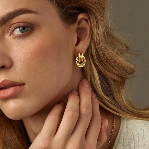 • Gold Earrings for Women Trendy: Crafted with premium 18K gold plating, lead and nickel free, hypoallergenic. It is safe and won't hurt your sensitive ears. High-polish surface can keep long-lasting shine. Don't worry about tarnish or fade.