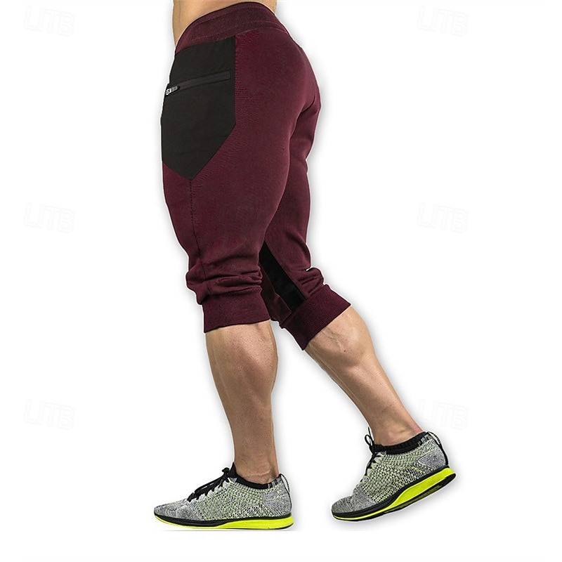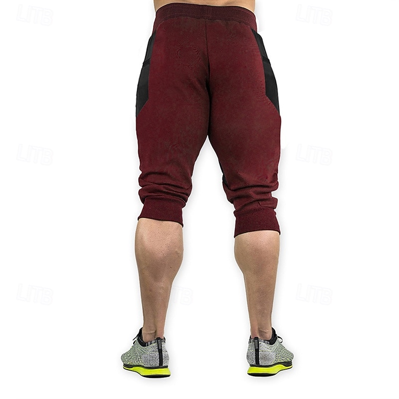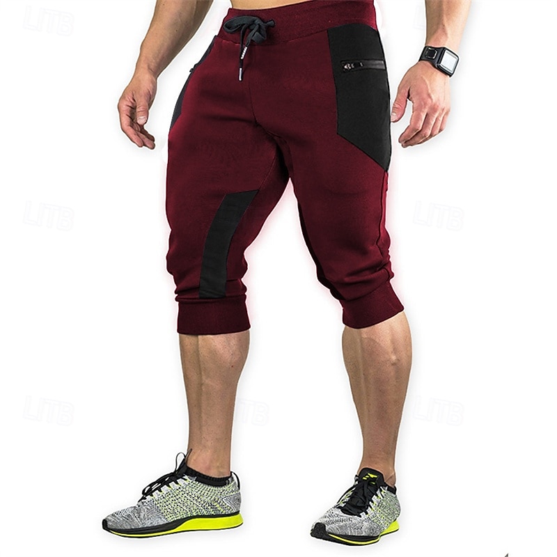 More information about Men's Sweat Shorts Capri shorts Running Shorts Gym Shorts Pocket Drawstring Elastic Waist Color Block Comfort Breathable Calf-Length Outdoor Sports Classic Casual Black Wine Micro-elastic