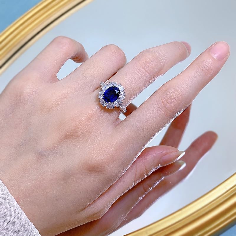 • 【Exceptional Craftsmanship】At its heart sits a pristine natural oval sapphire, exuding a depth of emotion and luxury. Encircled by dazzling moissanite accents, every aspect of this ring has been meticulously crafted to create a visual symphony, a harmonious blend of artistry and brilliance.