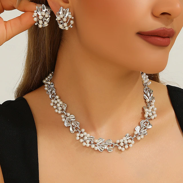 More information about Jewelry Set Two-piece Suit Zircon Pearl Zircon 1 Necklace Earrings Women's Elegant Vintage Luxury Cute Beads Star Flower Shape irregular Jewelry Set For Wedding Party Party Evening Wear