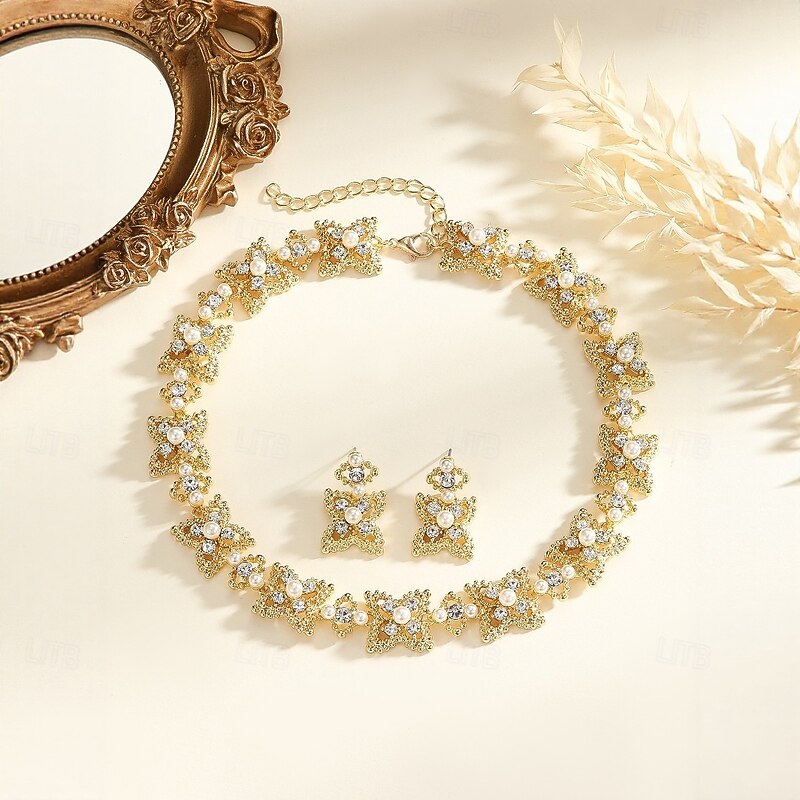 Jewelry Set Two-piece Suit Zircon Pearl Zircon 1 Necklace Earrings Women's Elegant Vintage Luxury Cute Beads Star Flower Shape irregular Jewelry Set For Wedding Party Party Evening Wear 1