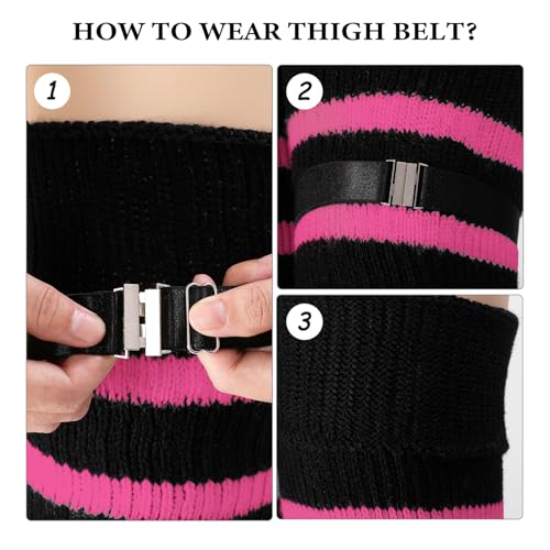 • 【Adjustable Thigh Garter Belt 】Thigh high socks with a adjustable thigh garter belt will aviod the embarrassment of sagging or rolling off. Adjustable and elastic belt can adjust up 13.5" to 26". You can fix the plus size socks to any length you want which can greatly meet your needs.