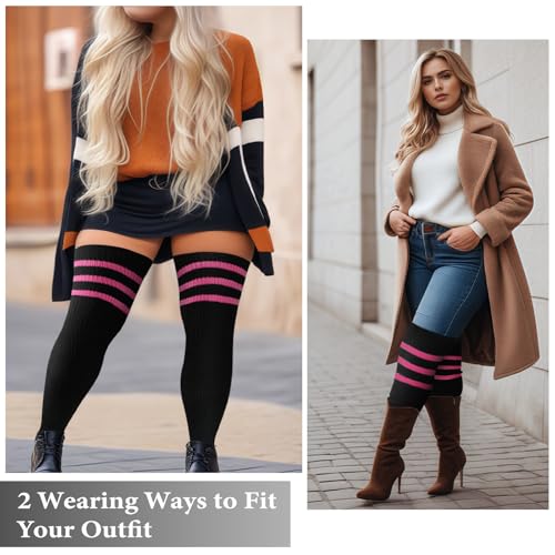 Plus Size Womens Thigh High Socks for Thick Thighs, Striped Over Knee Knit Leg Warmers, Extra Long High Stockings 2