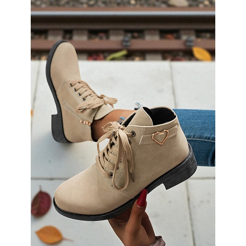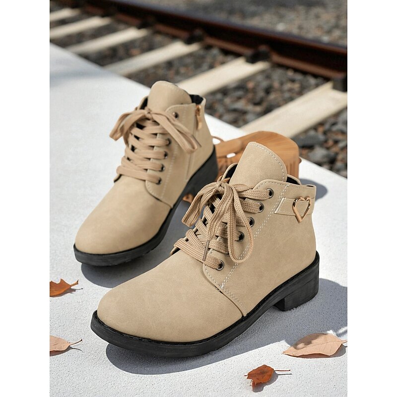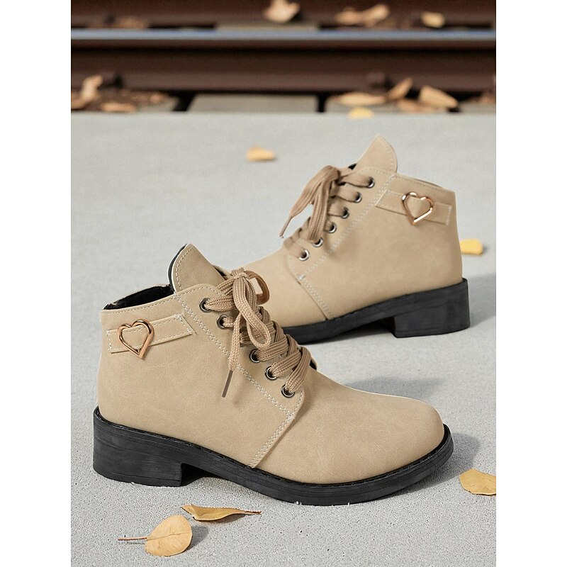 HOT ! Women's Black Ankle Boots – Lace-Up Short Boots with Heart Buckle for Casual Outfits and Streetwear