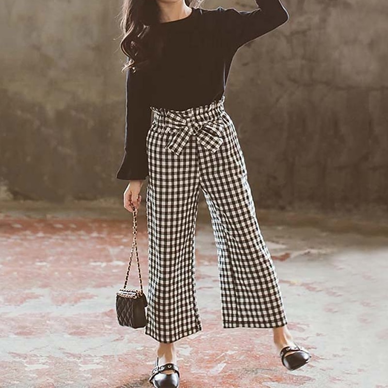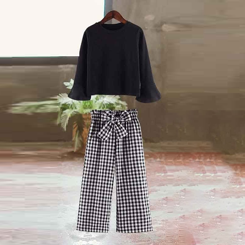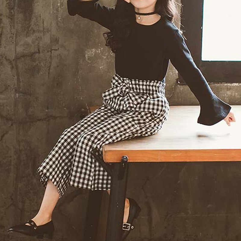 HOT ! 2 Pieces Kids Girls' Plaid Pants Suit Set Long Sleeve Fashion Outdoor 7-13 Years Fall Black