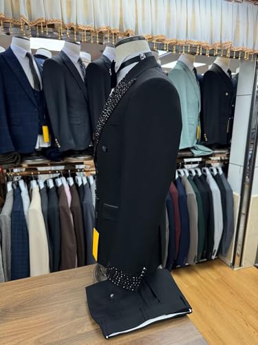 More information about Men's Beads Suit 2 Piece with Rhinestone Slim Fit Peak Lapel Blazer Jacket Pants Set for Prom, Party, Dinner