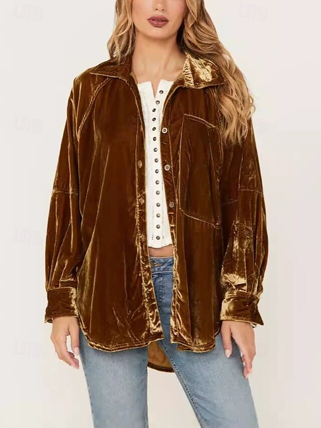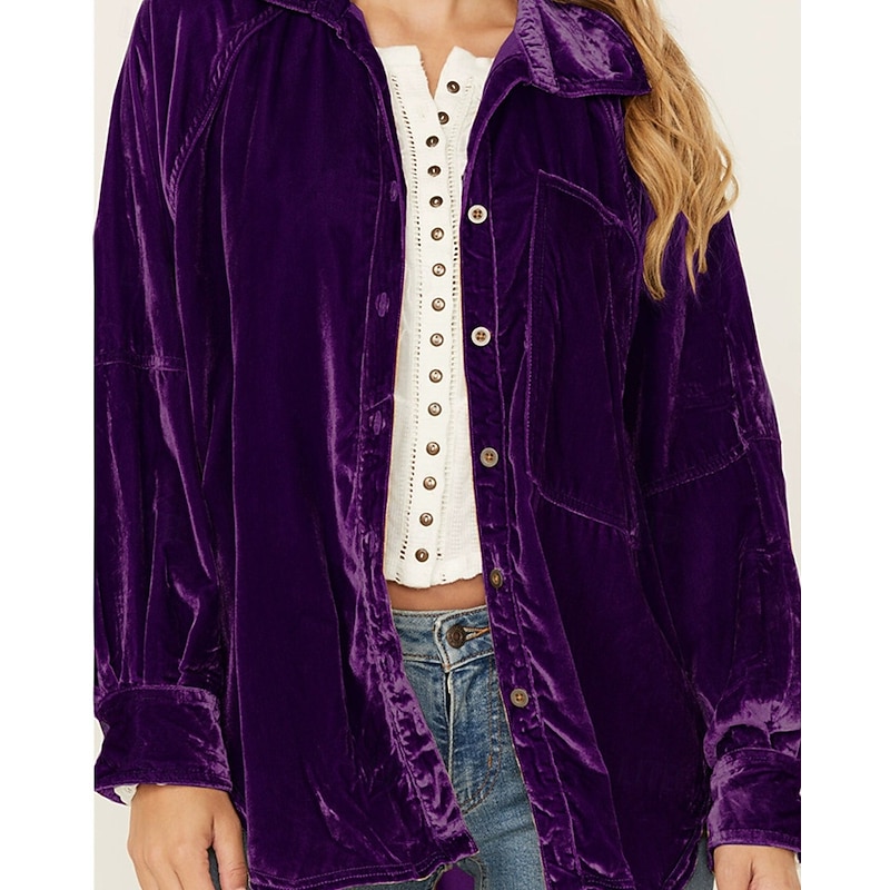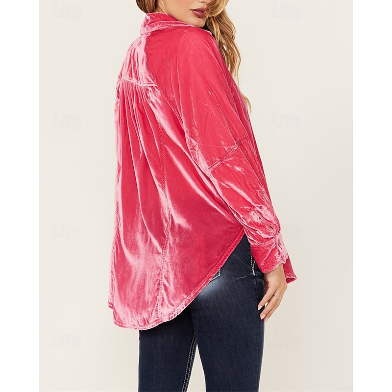 More information about Women's Shirt Blouse Plain Modern Casual Long Sleeve Shirt Collar Regular Tops Daily Holiday Buttons Pink Purple Brown Green Fall