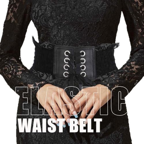 HOT ! Asooll Vintage Lace-up Wide Elastic Waist Belts Obi Style Cinch Waspie Corset Waist Bands Party Club Prom Costume Dress Belts for Women (Black)