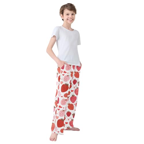 Cute Strawberries Pajama Pants Soft Lounge Sleepwear PJ Bottoms with Elastic Waist Ages 6–14 Years 7