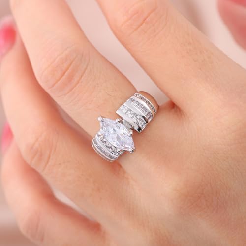 Marquise/Cushion/Round Cut Baguette Engagement Ring for Women,Sterling Silver Simulated Diamond Cut Cubic Zirconia Wedding Band CZ Promise Ring 6
