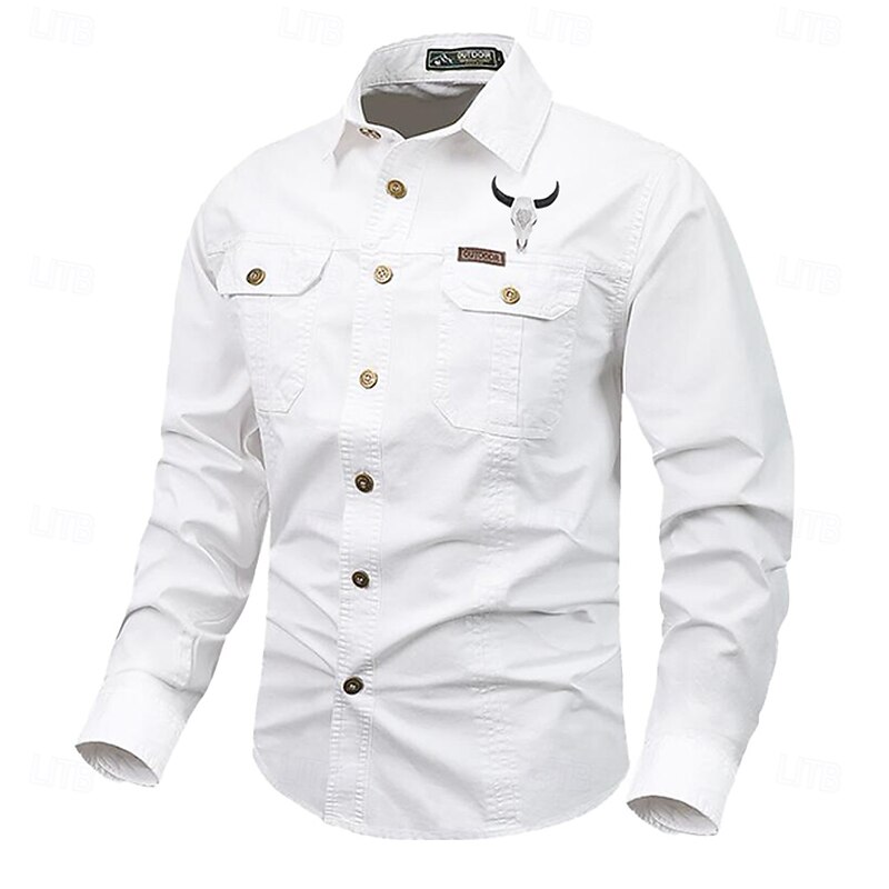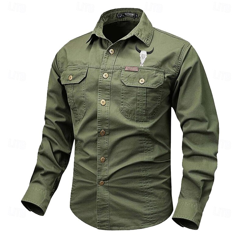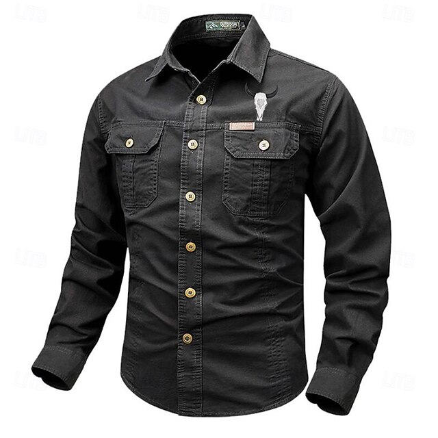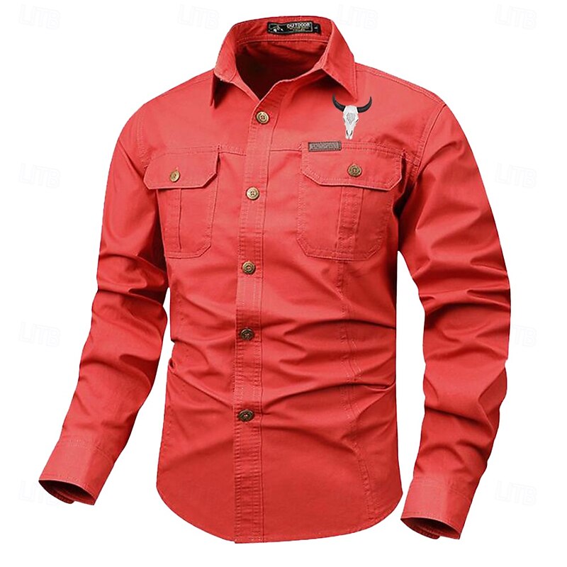 More information about Men's Cow Work Shirt Western Shirt Cargo Shirt Long Sleeve Casual Tactical Sports & Outdoor Going out Winter Spring & Fall Turndown Print Black Grey Black White Army Green Red
