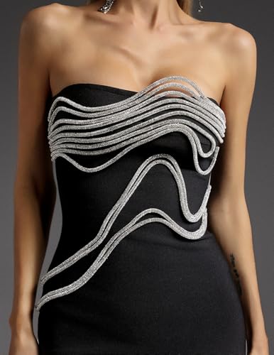 More information about BELLA BARNETT Black Strapless Shining Irregular Silver Wave Chains Cocktail Dress Stylish Visual Impact Bodycon Elegant Dress