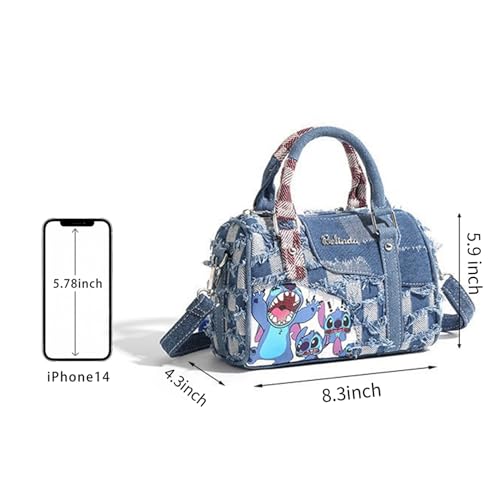 HOT ! Cute Womens Purses and Handbags, Blue Denim Shoulder Bag Cartoon Crossbody Bags With Detachable Strap