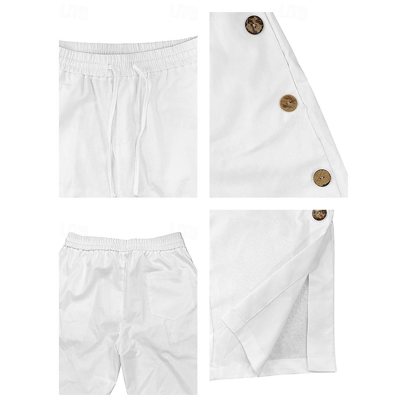 More information about 40% Linen Men's Linen Pants Trousers Summer Pants Baggy Pants Drawstring Elastic Waist Side Button Plain Comfortable Breathable Vacation Office / Career Daily Classic Casual Black White