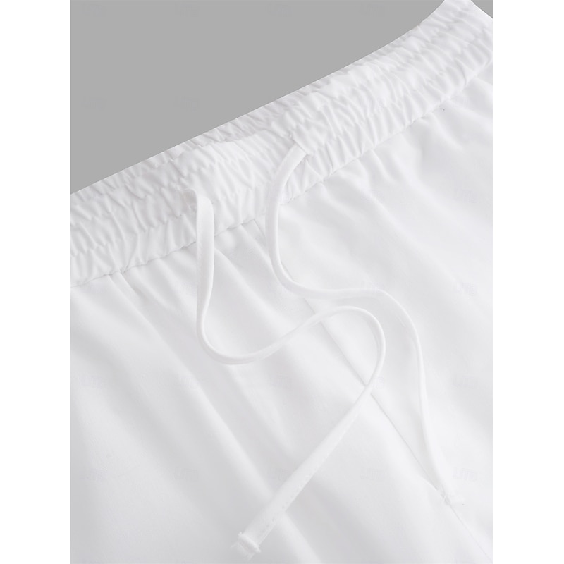 40% Linen Men's Linen Pants Trousers Summer Pants Baggy Pants Drawstring Elastic Waist Side Button Plain Comfortable Breathable Vacation Office / Career Daily Classic Casual Black White 10