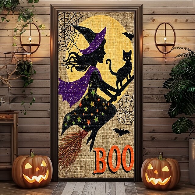 $18.99 - Halloween Door Cover – Flying Witch Silhouette with BOO Sign, Haunted House Entrance Banner, Scary Outdoor & Indoor Decoration for 2025 Halloween Bedroom, Living Room, Bathroom 2025. Shop for cheap Halloween Door Covers online? Buy at lightinthebox.com on sale today!