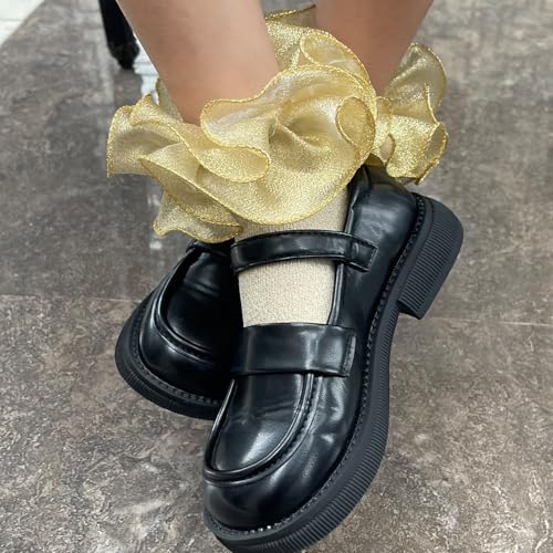 4 Pairs Girls Ruffle Socks Big and Shimmering Lace Sock Ruffled Dress Socks for Girl Toddler 5