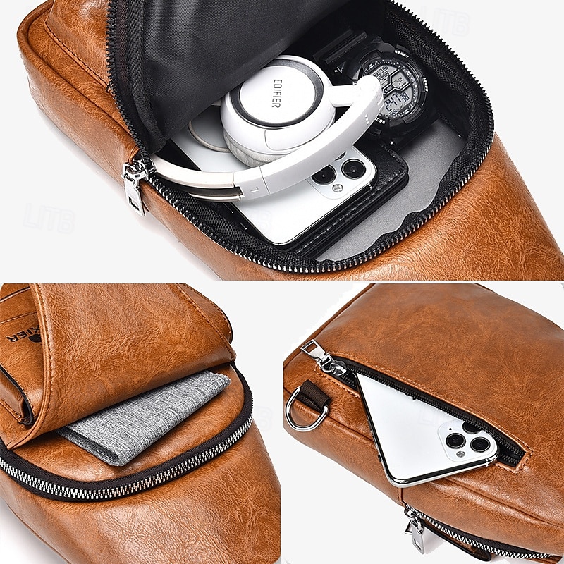 $26.99 - Men's Brown Faux Leather Crossbody Sling Bag with Multiple Zippered Pockets and Adjustable Strap, Stylish and Functional for Daily Use 2025. Shop for cheap Men's Bags online? Buy at lightinthebox.com on sale today!