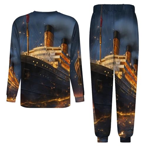 Titanic Cruise Ship Voyage Men's Pajama Set Long Sleeve Sleepwear Pjs Soft Crewneck Shirts And Bottoms 4