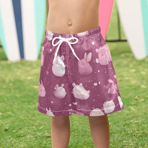 Pigsaly Boys Swim Trunks Cute Mauve Dusty Rose Rabbit Boys Board Shorts Swimsuit Swimwear Summer Bathing Suit 4T 5