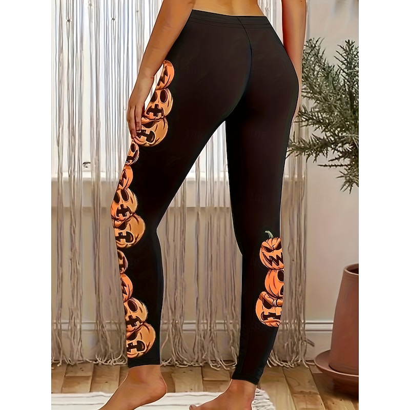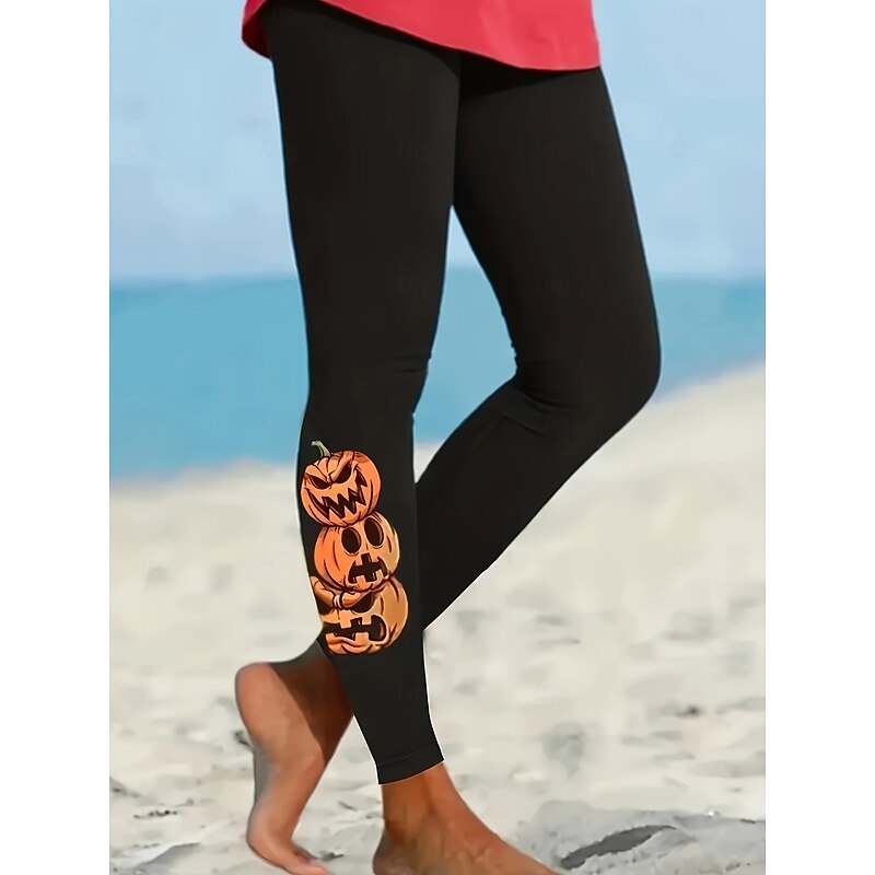 More information about Women's Leggings Vacation Vintage Fashion Ankle-Length High WaistPantsHalloween Graphic Halloween Printing Soft Breathable Stretchy Vacation Street Causal Black Yellow Orange Spring Fall Winter Slim