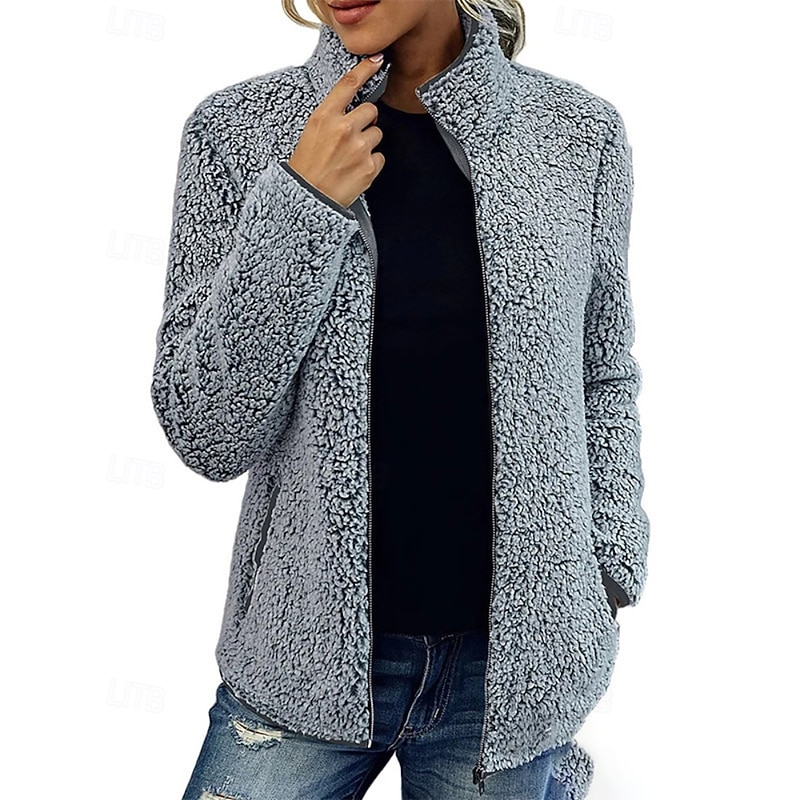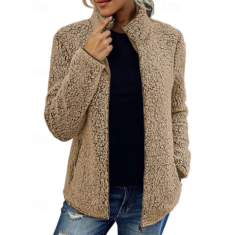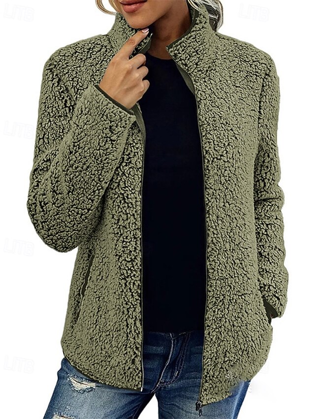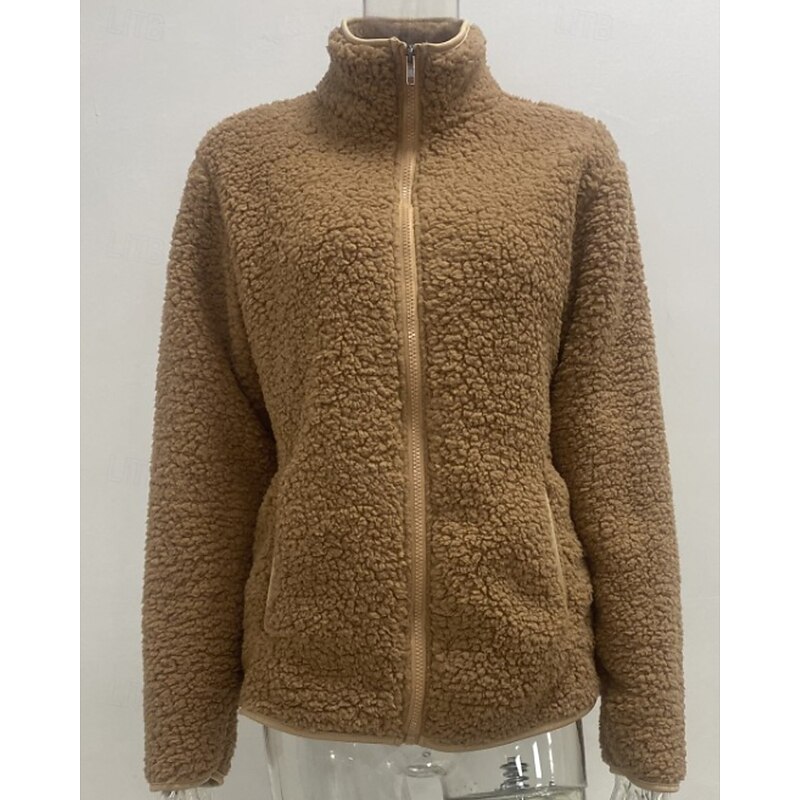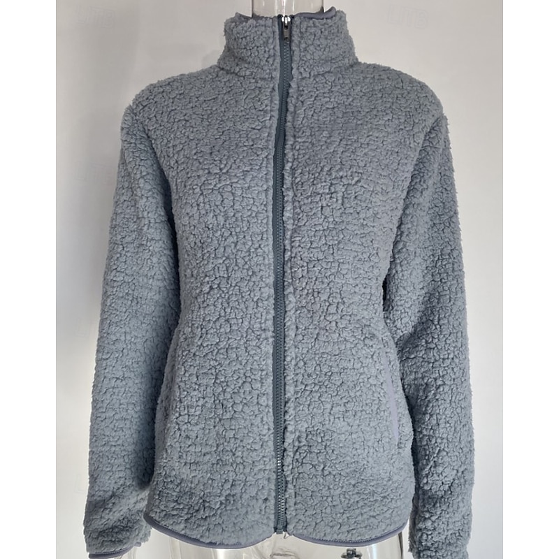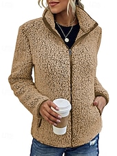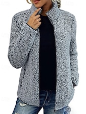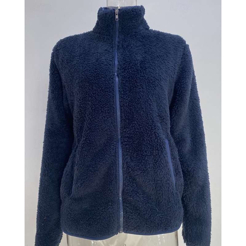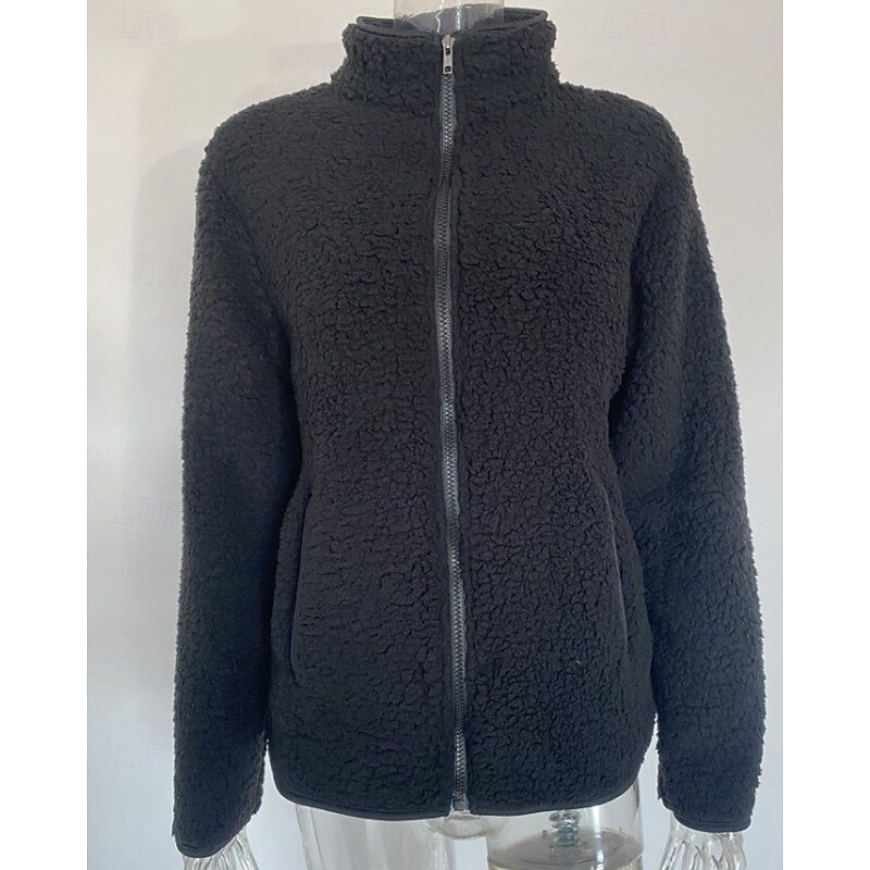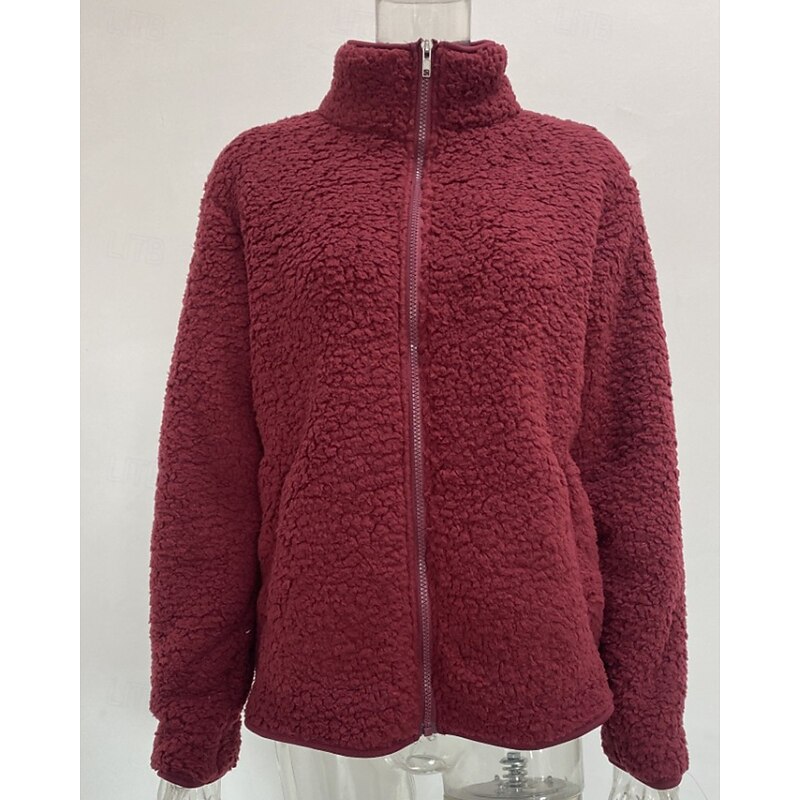 More information about Women's Winter Jacket Teddy Coat Warm Comfortable Zipper Pocket Casual Plain Vacation Street Casual Daily Wear Regular Turndown Regular Fit Long Sleeve Outerwear Black Wine Navy Blue Fall Winter
