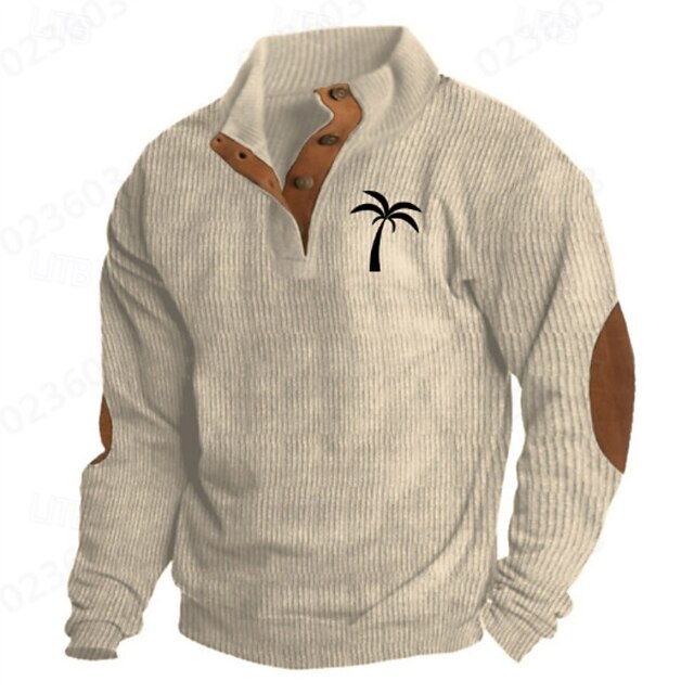 More information about Men's Sweatshirt Corduroy Pullover Hoodie Sweatshirt Pullover Button Up Hoodie Apricot Black White Blue Khaki Standing Collar Plain Patchwork Color Block Textured Sports & Outdoor Casual Daily