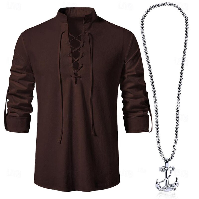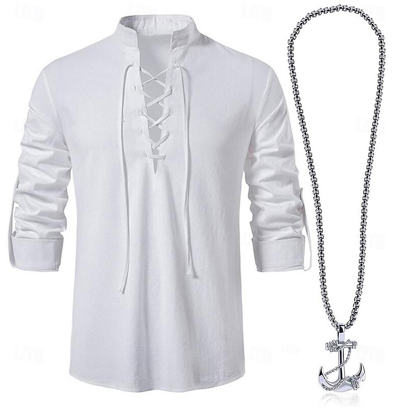 $26.99 - Medieval Renaissance Necklace Outfits Shirt Pirate Viking Fancy Dress Men's Pirate Fantasy Halloween Carnival Casual Daily Wear LARP Adults' 1 Necklace Shirt Spring & Summer 2025. Shop for cheap Tops online? Buy at lightinthebox.com on sale today!