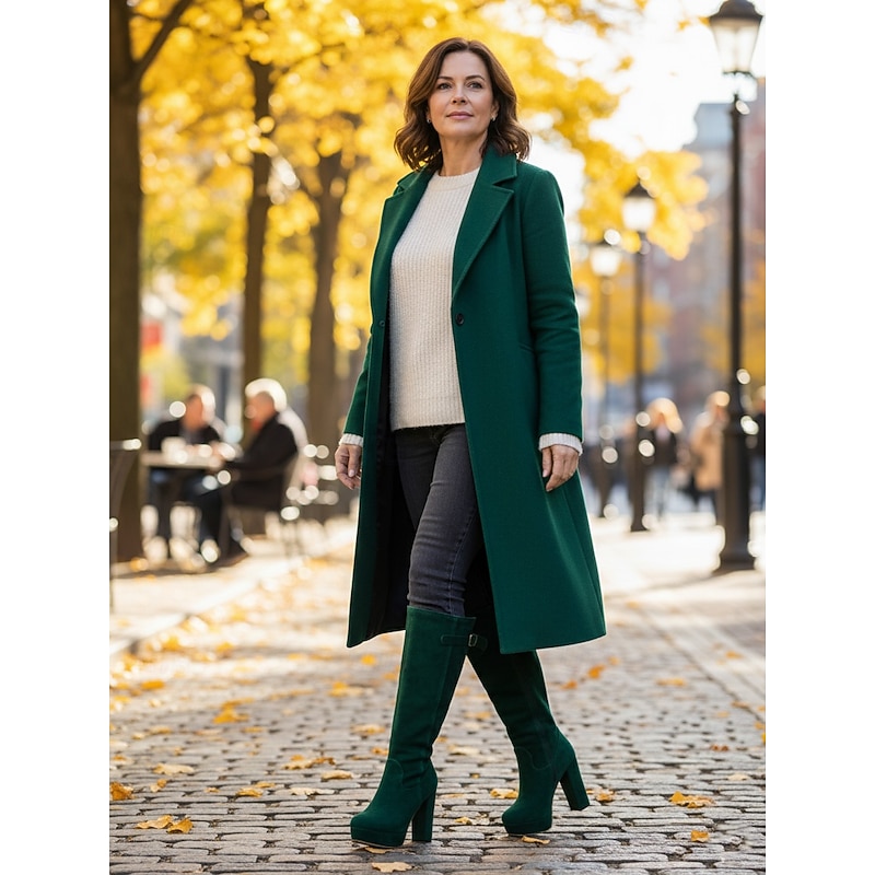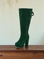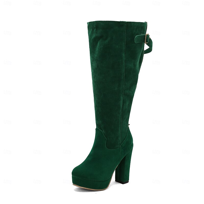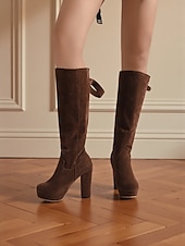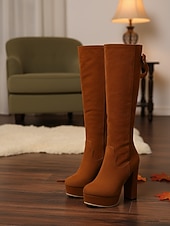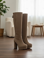 More information about Women's Suede Knee High Platform Boots with Adjustable Wide Zipper Calf, Block Heel Fashion Boots for Urban Streetwear