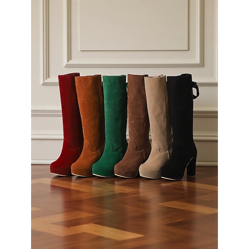 HOT ! Women's Suede Knee High Platform Boots with Adjustable Wide Zipper Calf, Block Heel Fashion Boots for Urban Streetwear